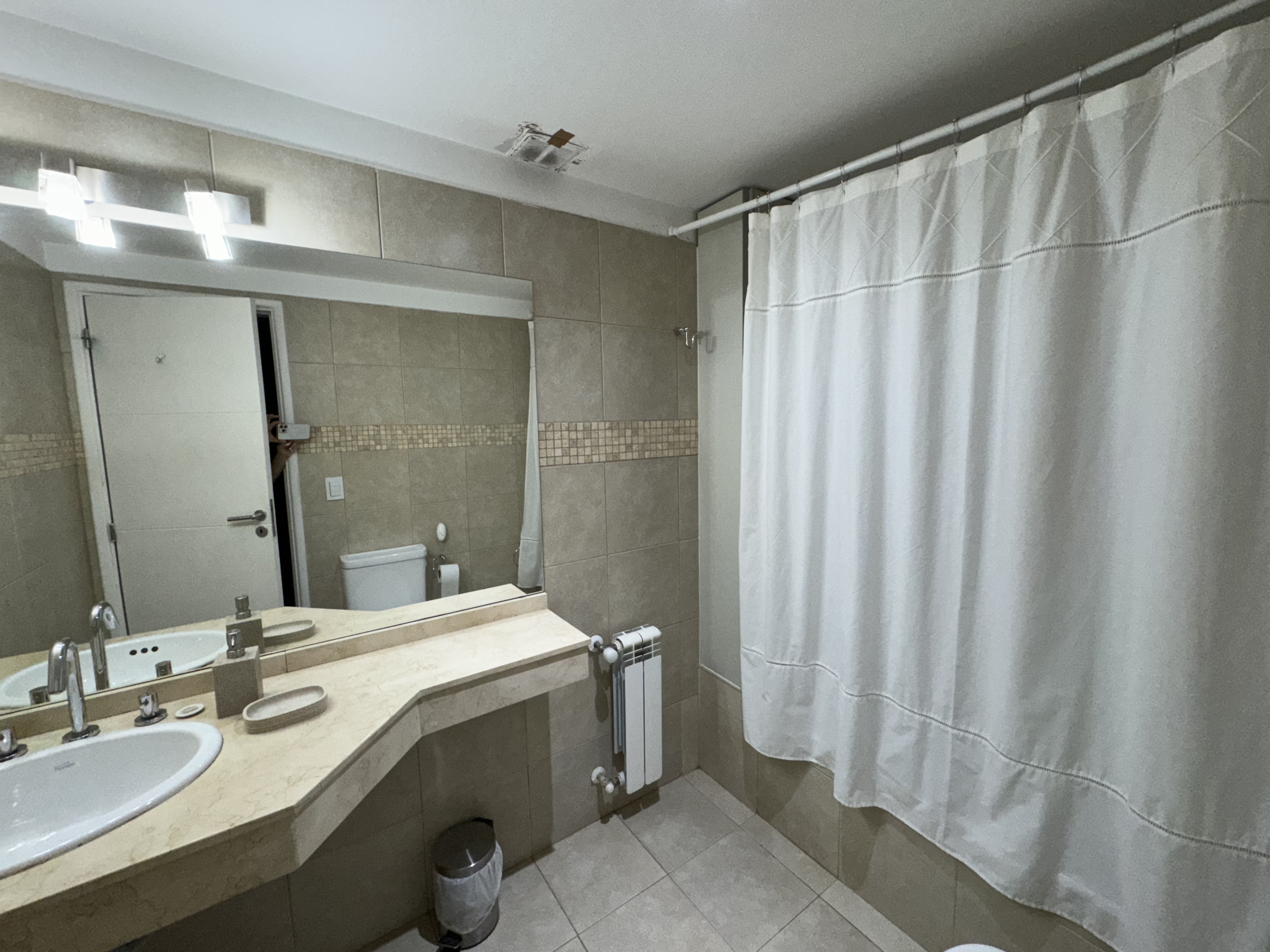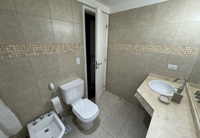 Este departamento equipado ofrece comodidades modernas que garantizan una estadía confortable. La cocina cuenta con heladera con freezer, microondas, tostadora, juguera y cafetera Nescafé Dolce Gusto, además de vajilla completa y batería de cocina. También dispone de WiFi, alarma y cámara de seguridad en el acceso, y lavarropas. El baño es completo e incluye inodoro, bidet y bañera. Se provee ropa blanca para todos los huéspedes.