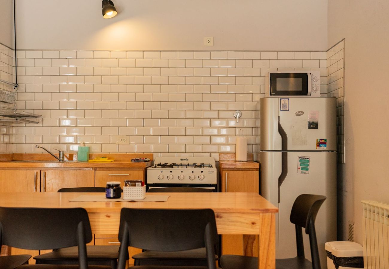 Ubicado en un primer piso, este moderno departamento en Villa La Angostura está cerca de la avenida principal y frente a un supermercado, ideal para familias y grupos.