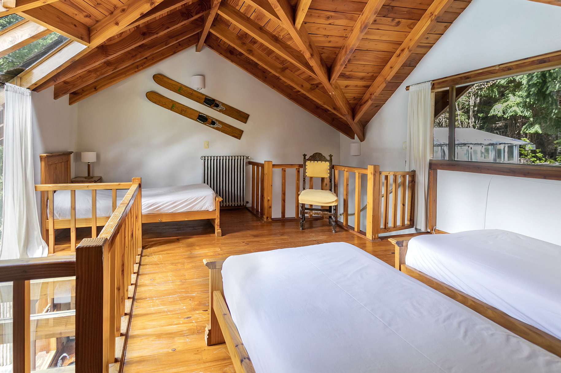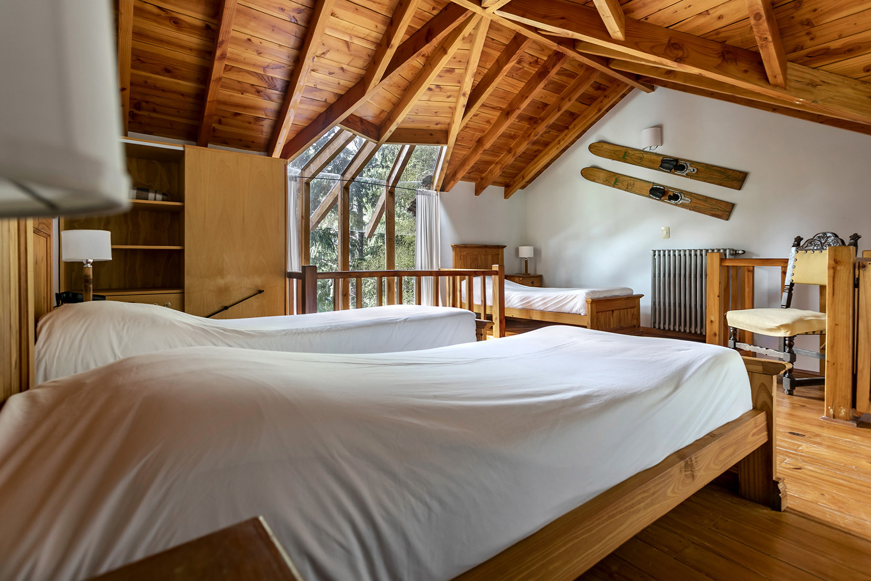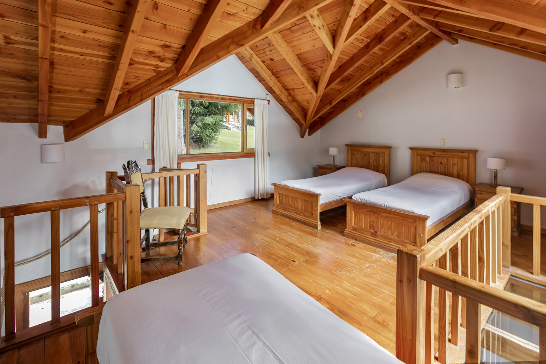En la planta alta se encuentra el dormitorio principal con cama matrimonial, un altillo con cama individual adicional y un baño completo con bañera.
