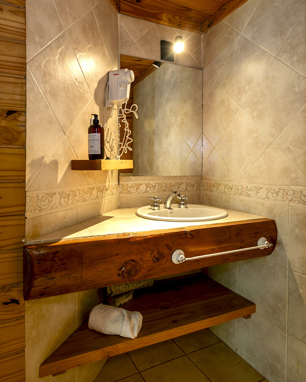 Pensada para alojar hasta 4 personas, esta cabaña es ideal tanto para una pareja que busca una escapada relajada como para una familia que desea reconectar con la naturaleza. Cuenta con un dormitorio con cama matrimonial y otro con dos camas individuales, un baño completo con bañera e hidromasaje y un toilette adicional. El interior combina madera, luz natural y detalles acogedores que invitan al descanso. En el living, el hogar a leña crea un ambiente ideal para las tardes frescas, con TV y Chromecast para disfrutar de una buena película. La cocina está equipada con todo lo necesario para una estadía cómoda: vajilla, microondas, tostadora, pava eléctrica y juguera.