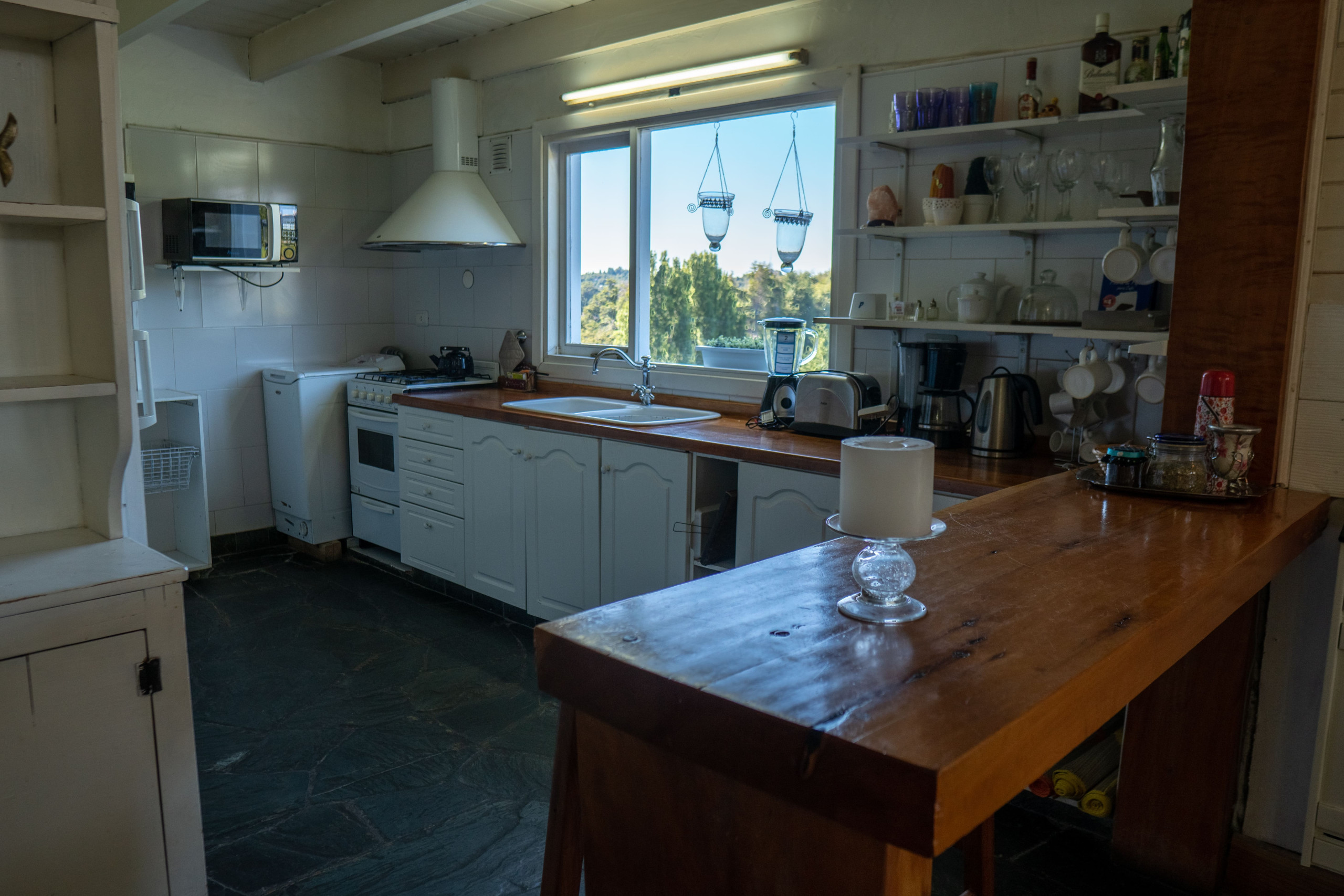 - Cocina completamente equipada con cafetera, tostadora, pava eléctrica y microondas.