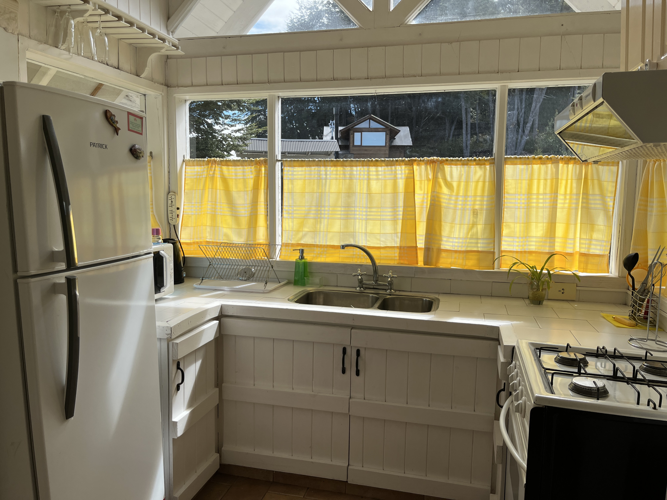 - Cocina integrada: Totalmente equipada con tostadora, pava eléctrica, heladera, horno, microondas y cafetera.