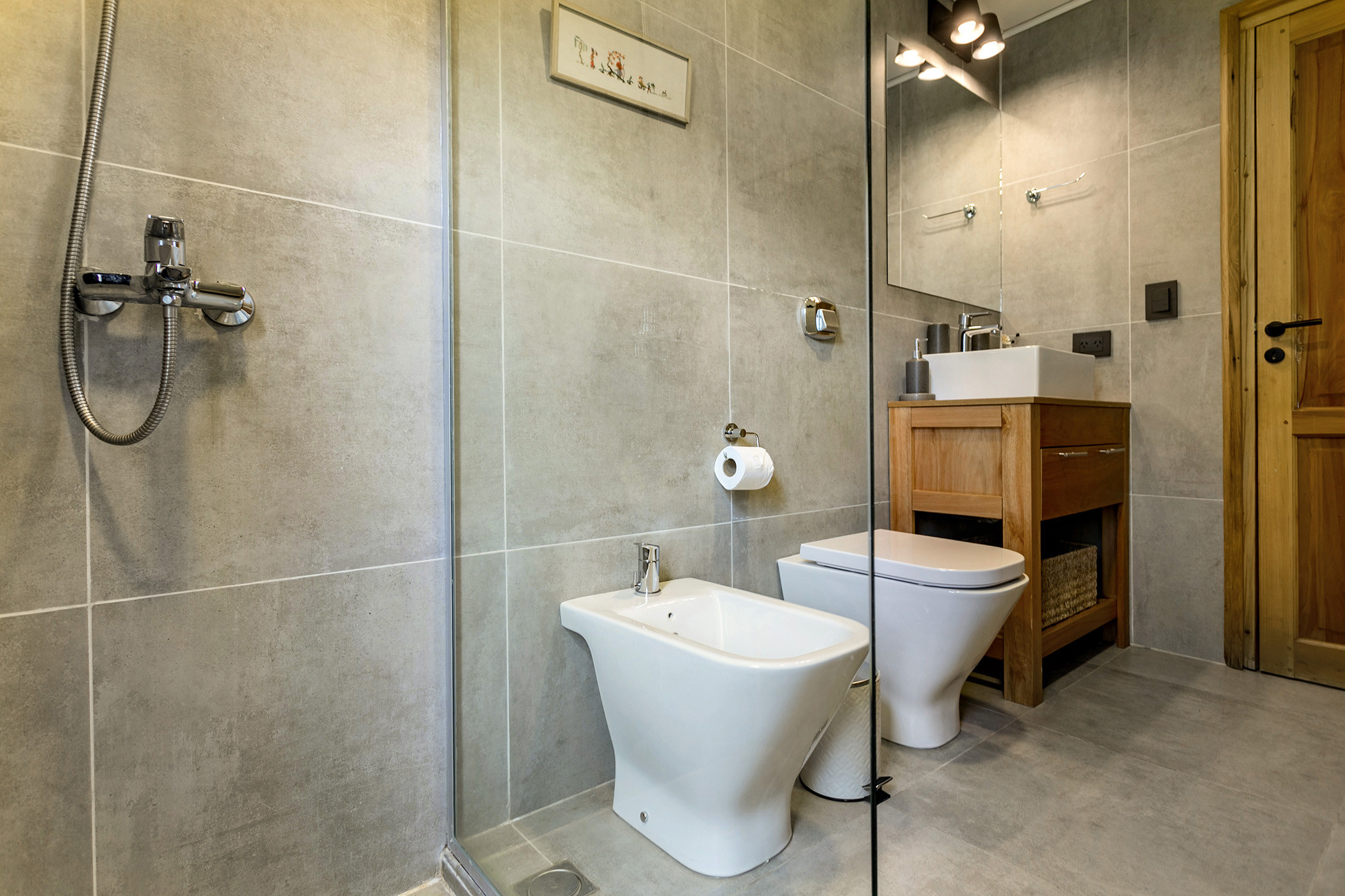- Zona privada: Tres habitaciones: Dos con dos camas individuales y escritorio, ideal para trabajar; Otra con cama matrimonial, Smart TV y baño en suite con ducha.