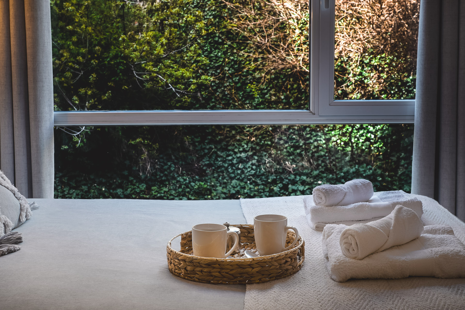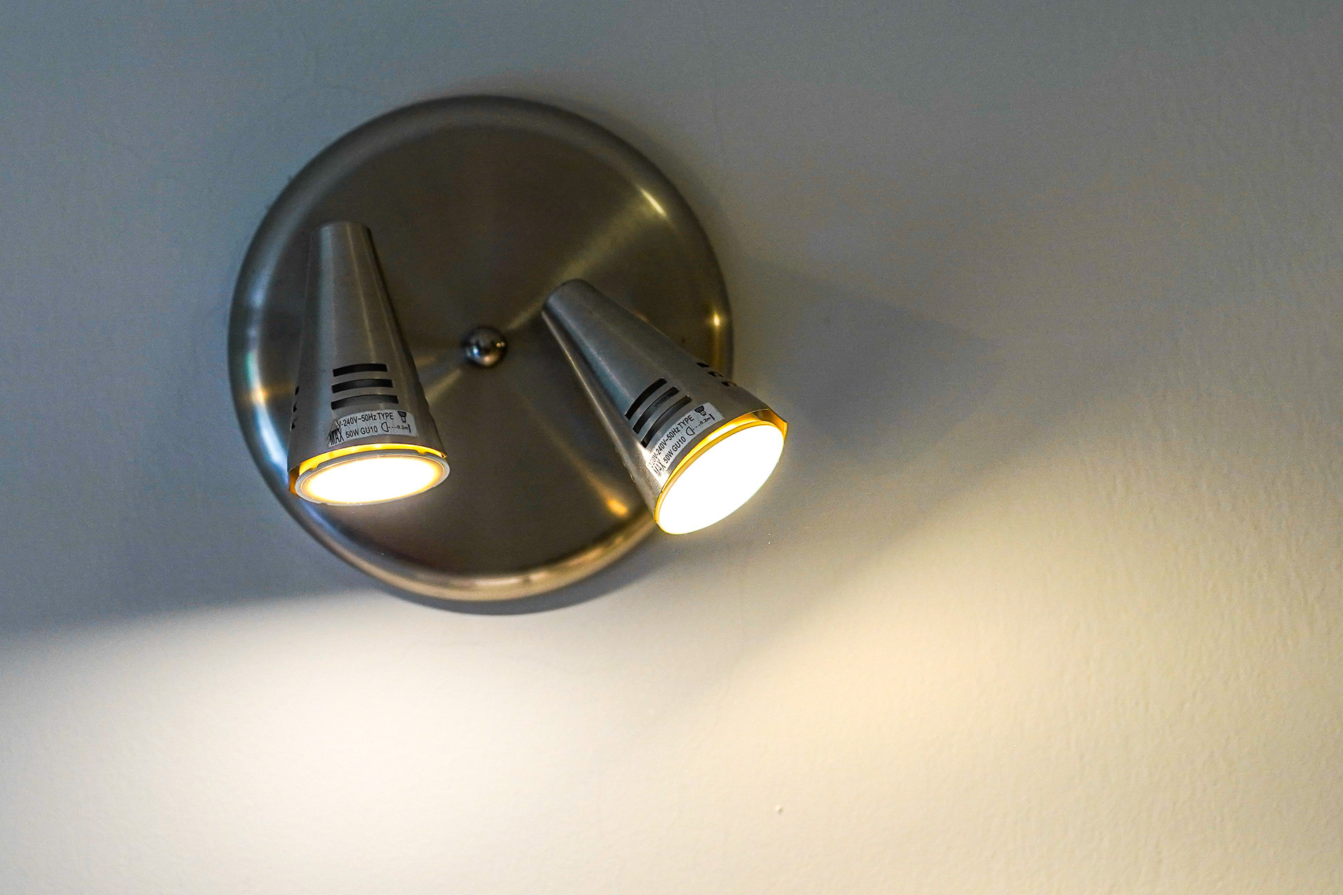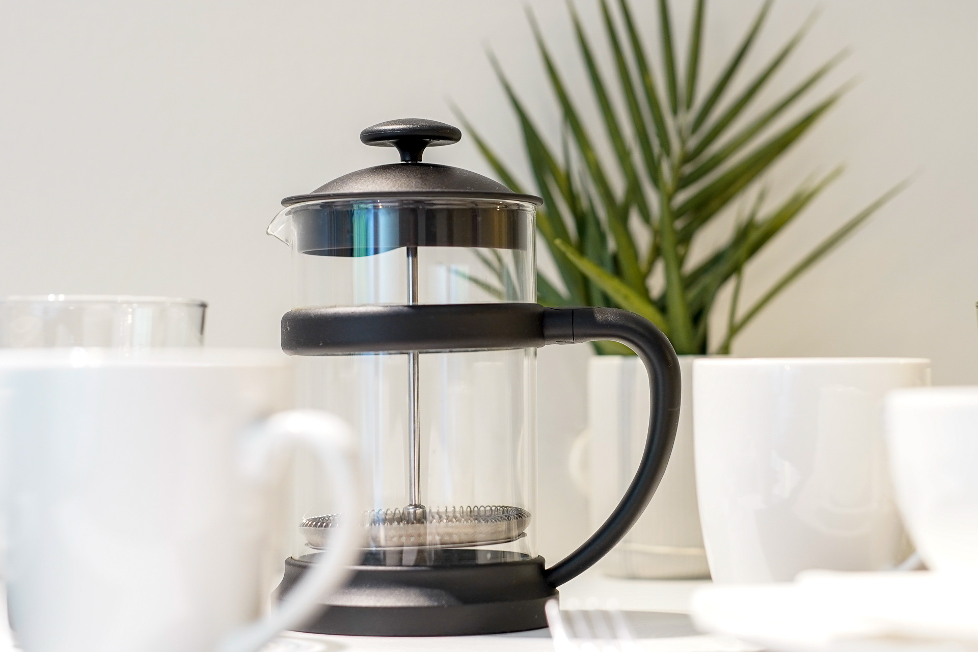 In the electric open plan kitchen, refrigerator, microwave, oven, coffee machine and kettle are provided.