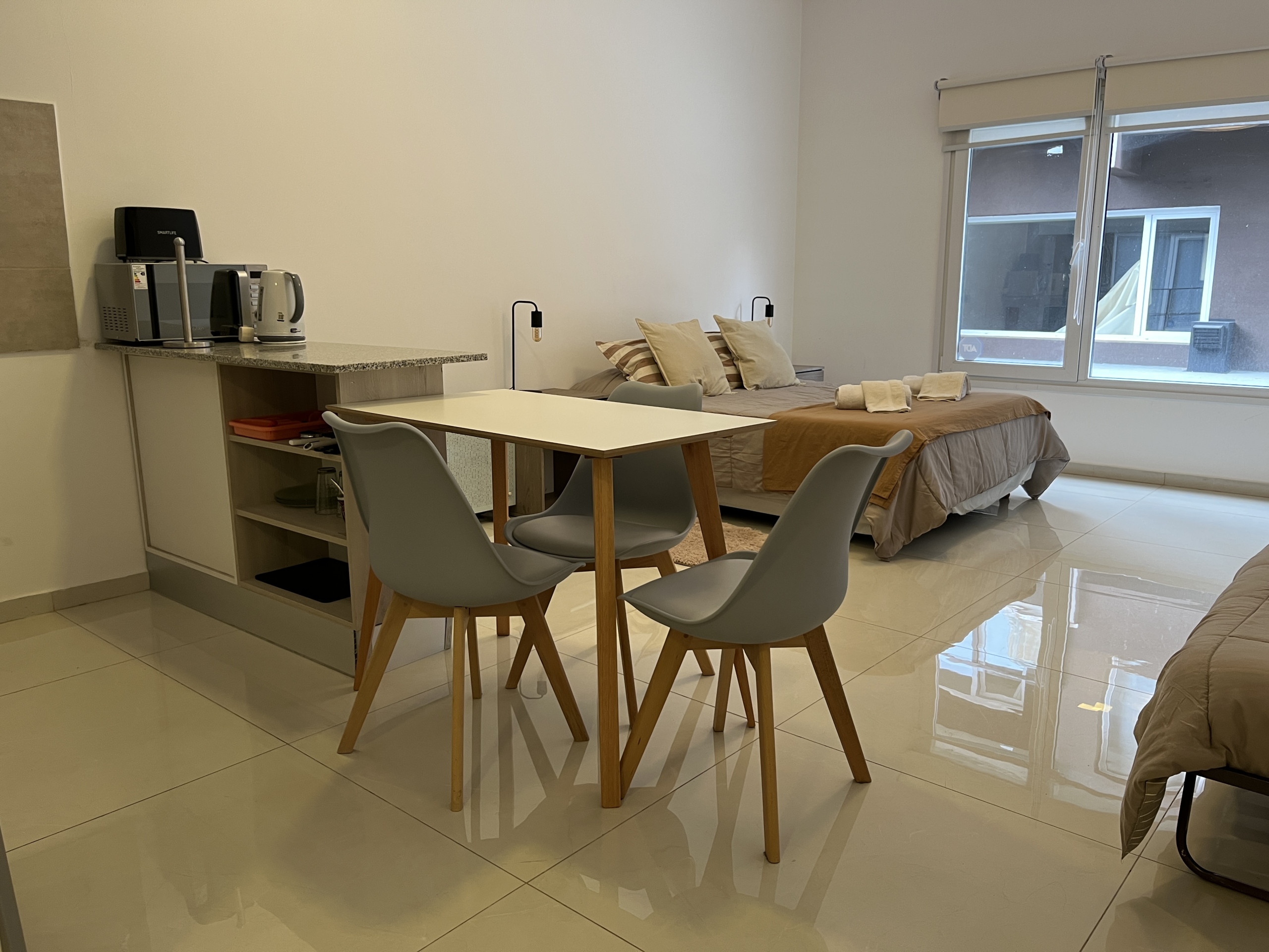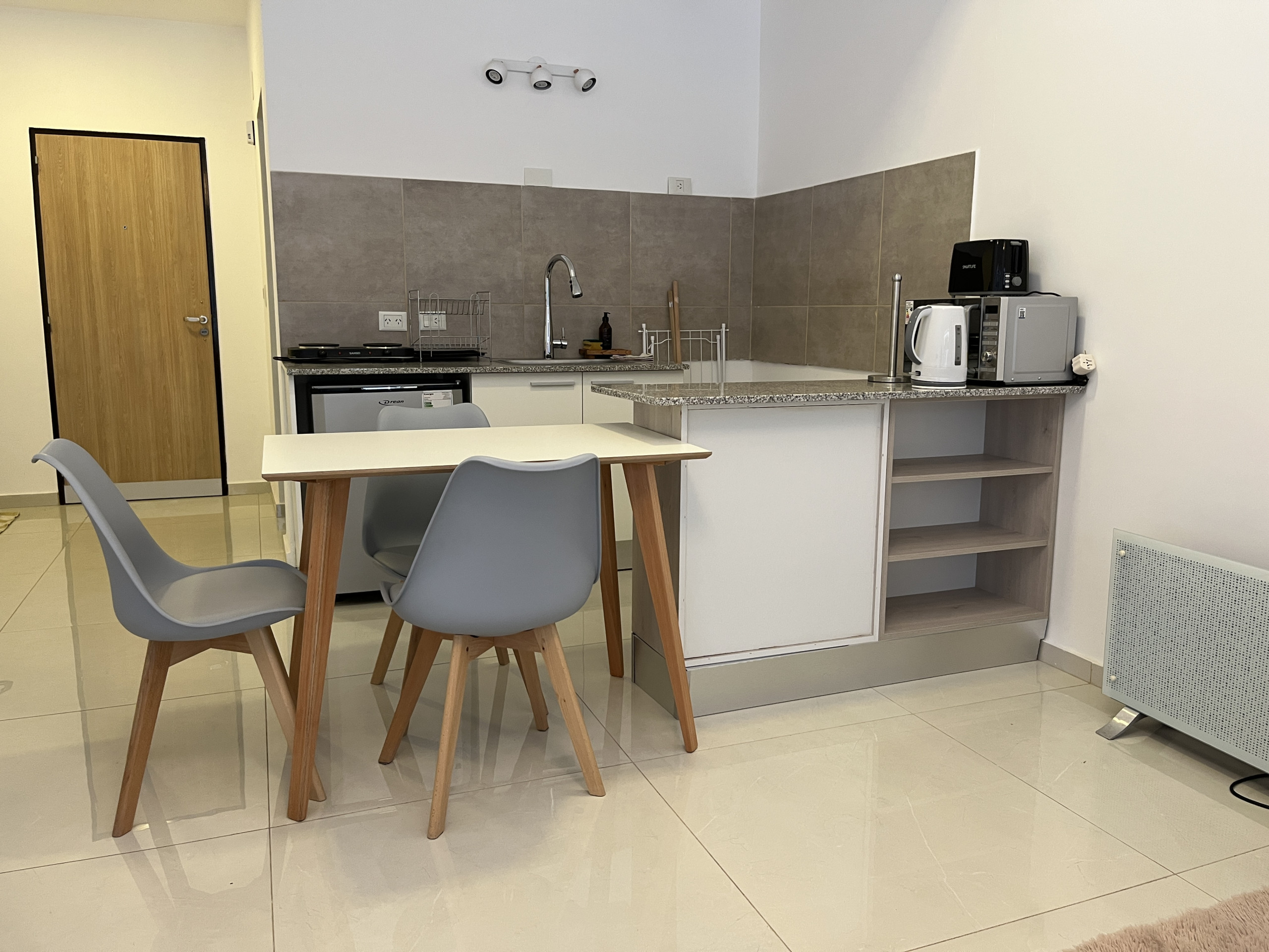 In the gas independent kitchen, refrigerator, microwave, dishes/cutlery, kitchen utensils, coffee machine and toaster are provided.