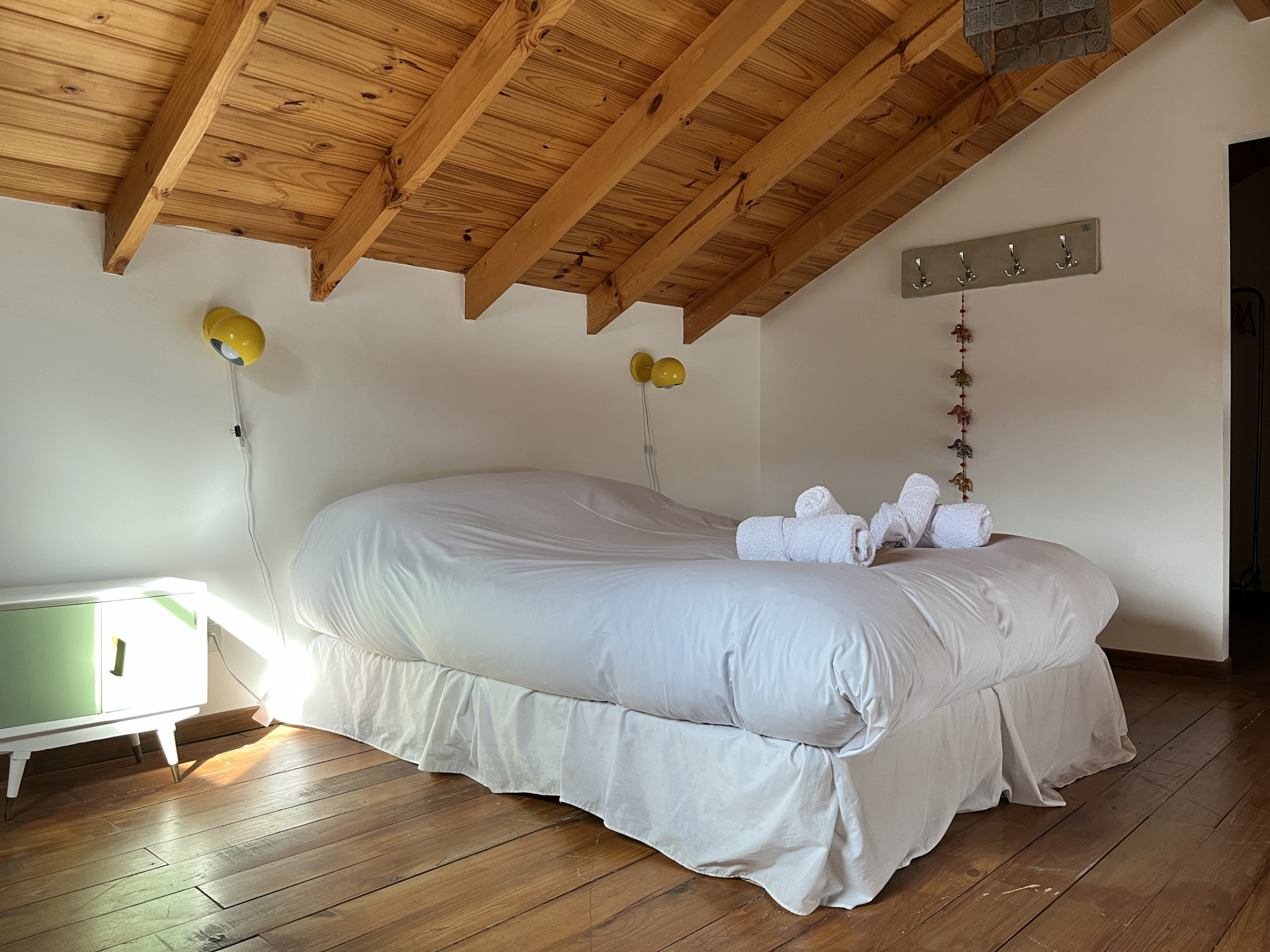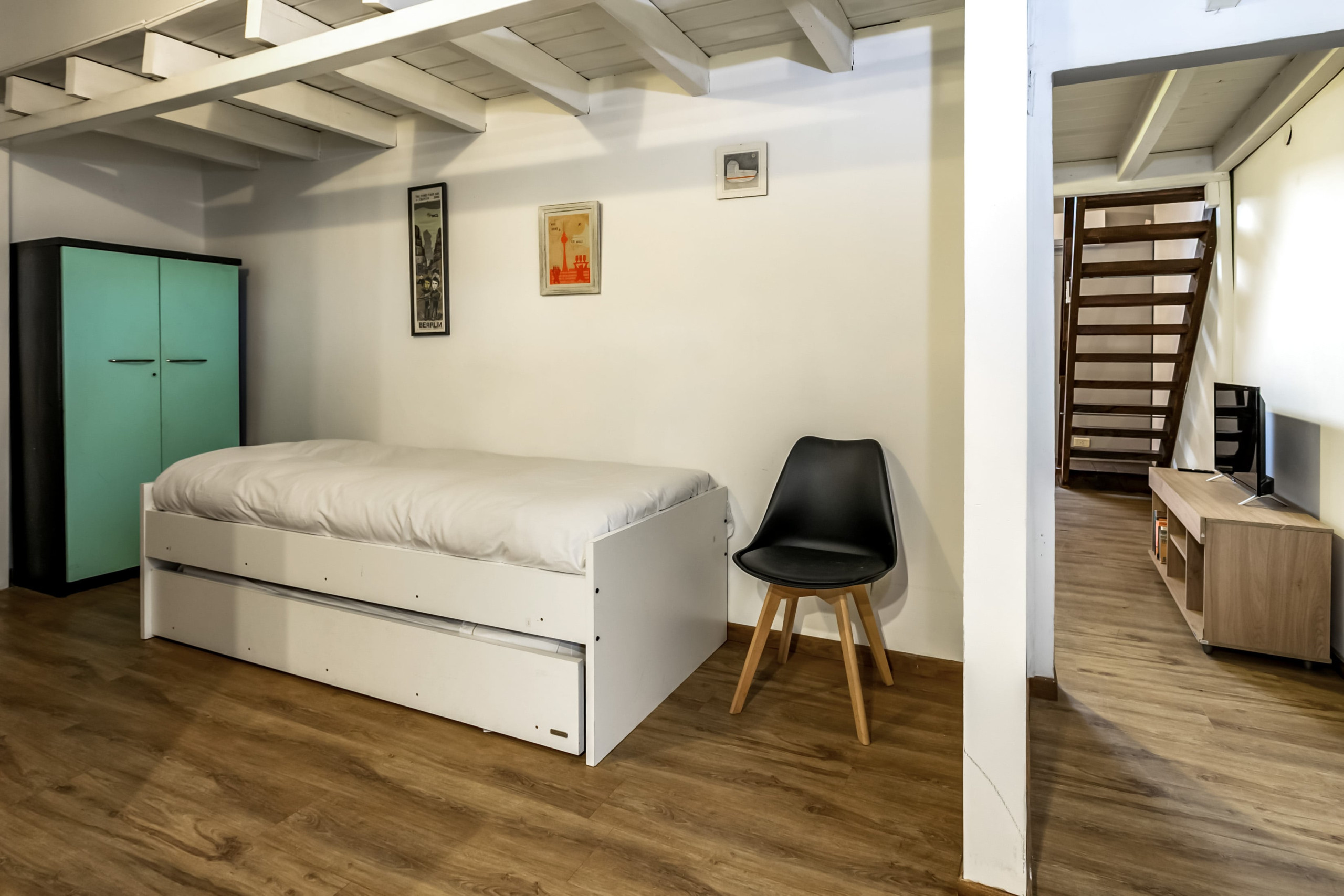 With capacity for four people, this two-storey loft-style apartment offers a comfortable and functional space. On the ground floor, there is a living-dining room with a fully equipped integrated kitchen, a bathroom with a shower, and two single beds, ideal for children or friends. On the upper floor, the main bedroom offers a double bed and a tranquil environment for resting.