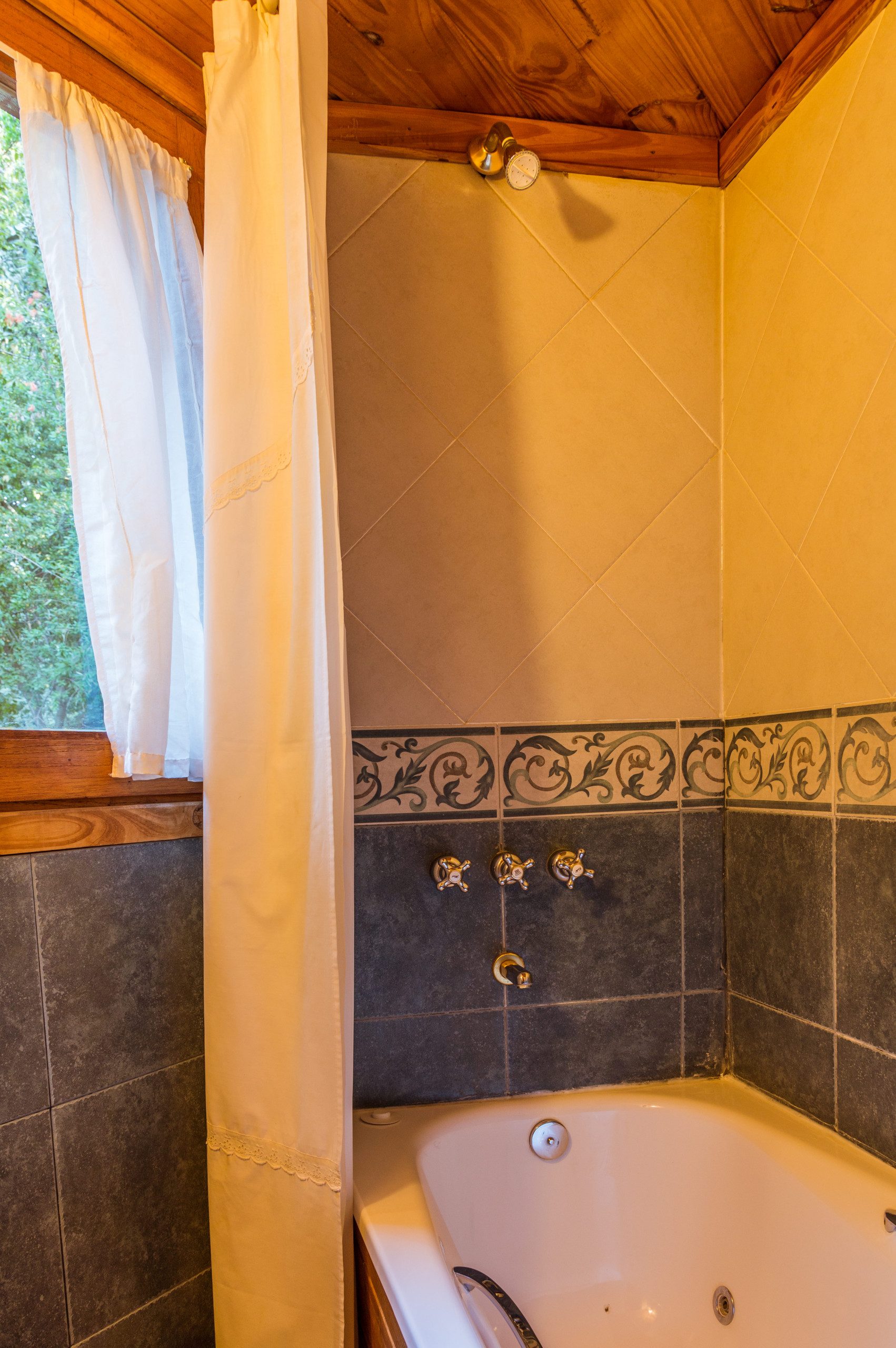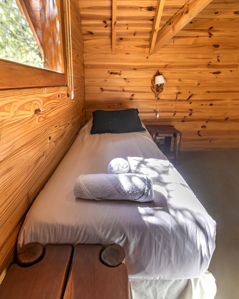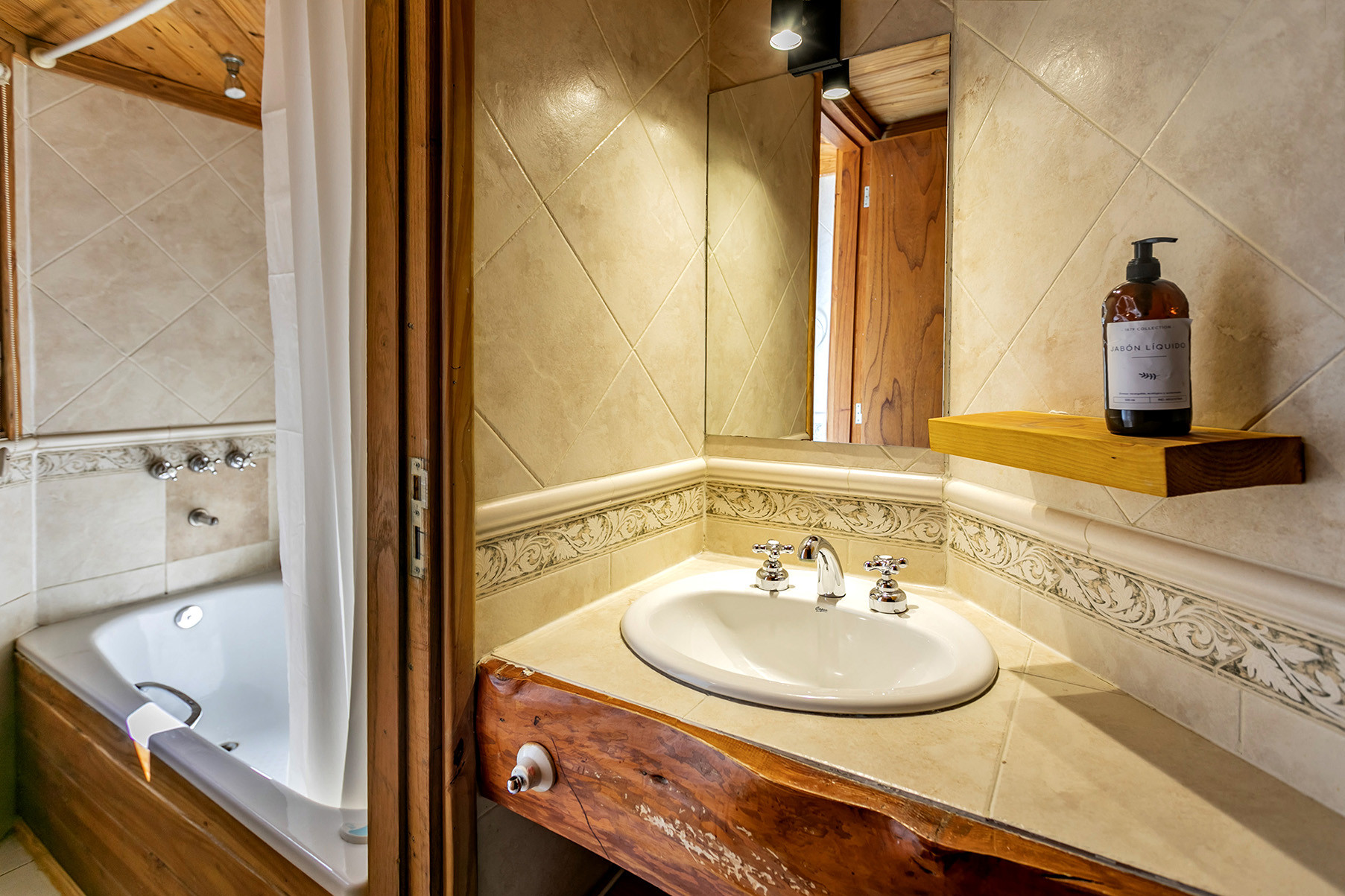 This rustic cabin offers amenities that combine modern comforts with Patagonian charm. The kitchen is equipped with a microwave, fridge, and electric kettle, while the living room offers WiFi, TV, and a relaxation area next to the fireplace. The heater is an individual gas boiler. The outdoor deck, with a barbecue and forest views, is perfect for enjoying barbecues and outdoor moments in direct contact with nature.