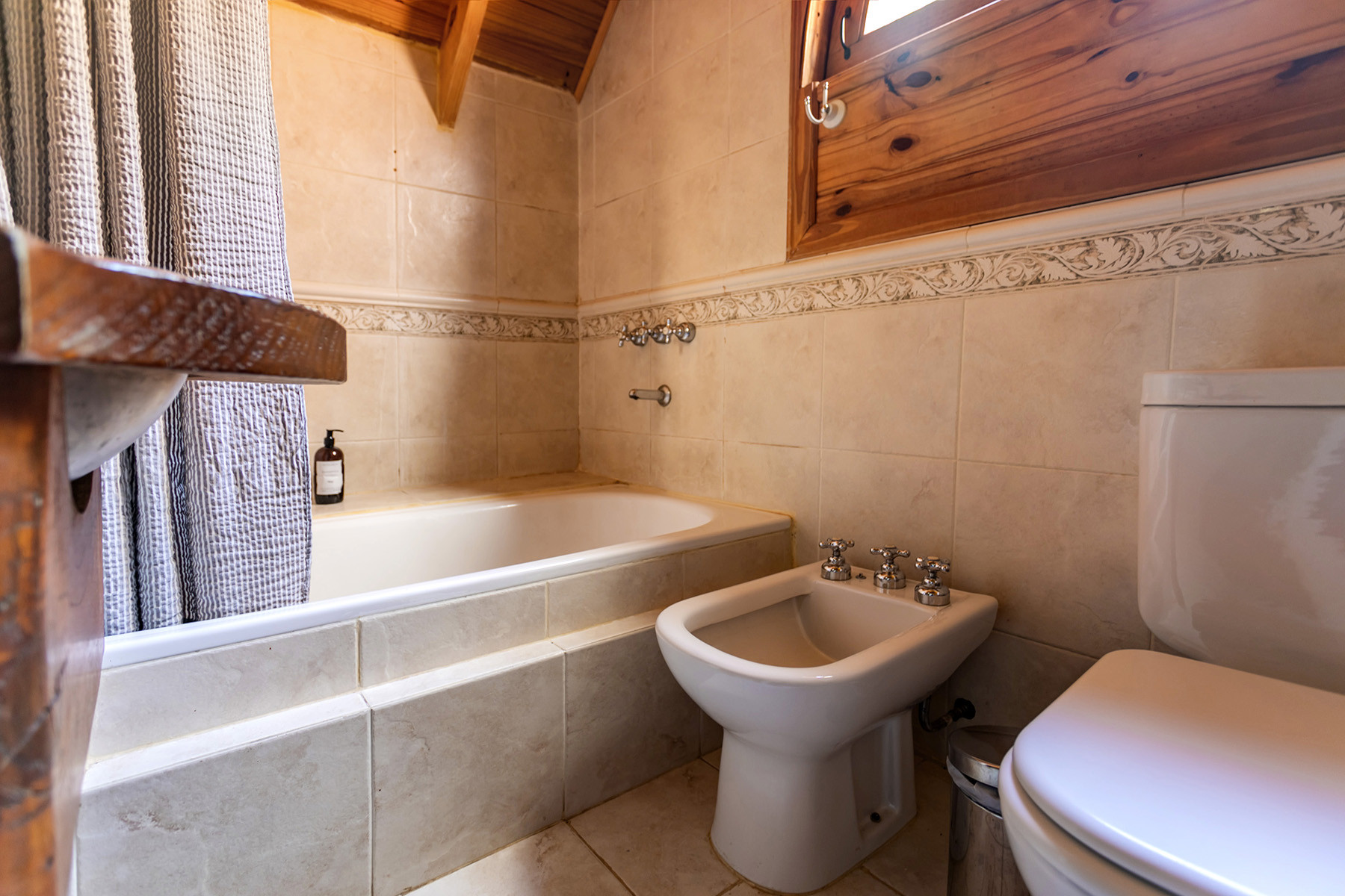 With capacity for up to 8 people, this cottage in Villa La Angostura is perfect for families or groups of friends. Distributed over two levels, it features a spacious living room with a wood-burning stove, dining area, and a fully equipped kitchen. On the upper floor, there is the main bedroom with a double bed, a room with single beds, a full bathroom, and a second shared bedroom, perfect for accommodating the youngest family members.