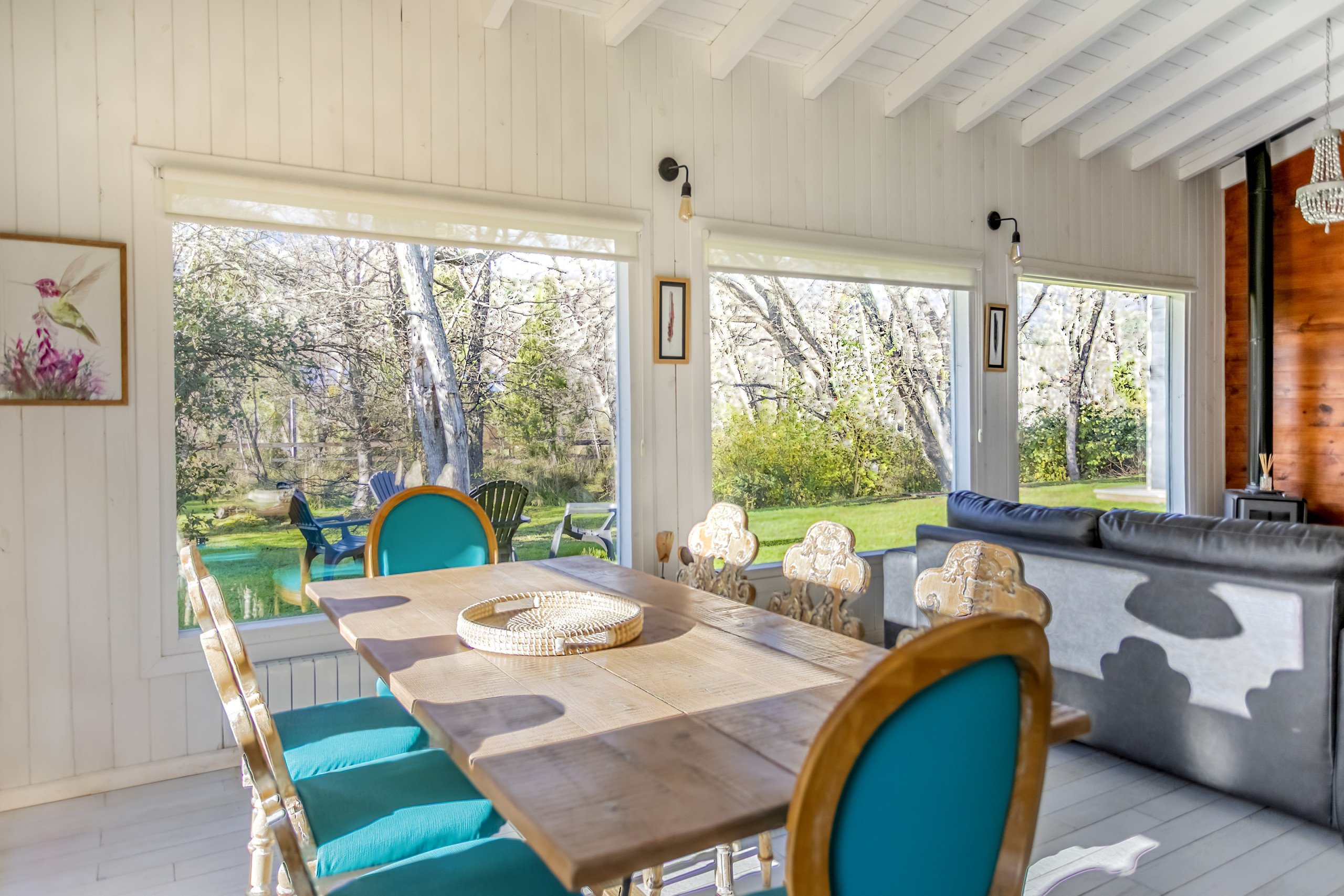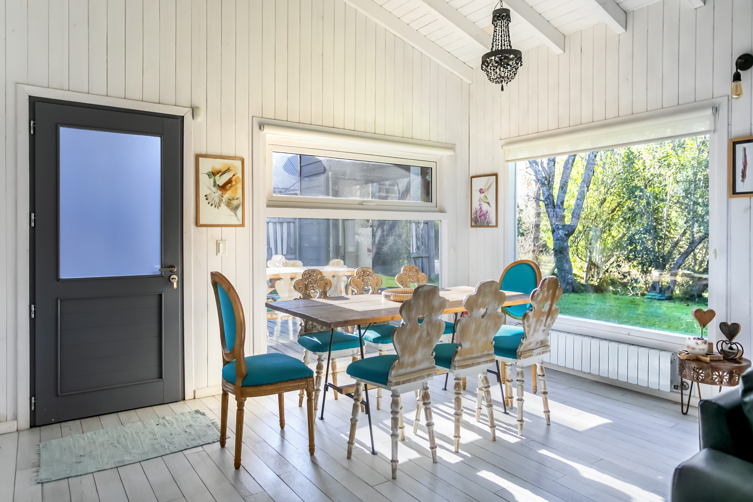 - Exterior: Deck with a barbecue and garden furniture, ideal for enjoying the natural surroundings.