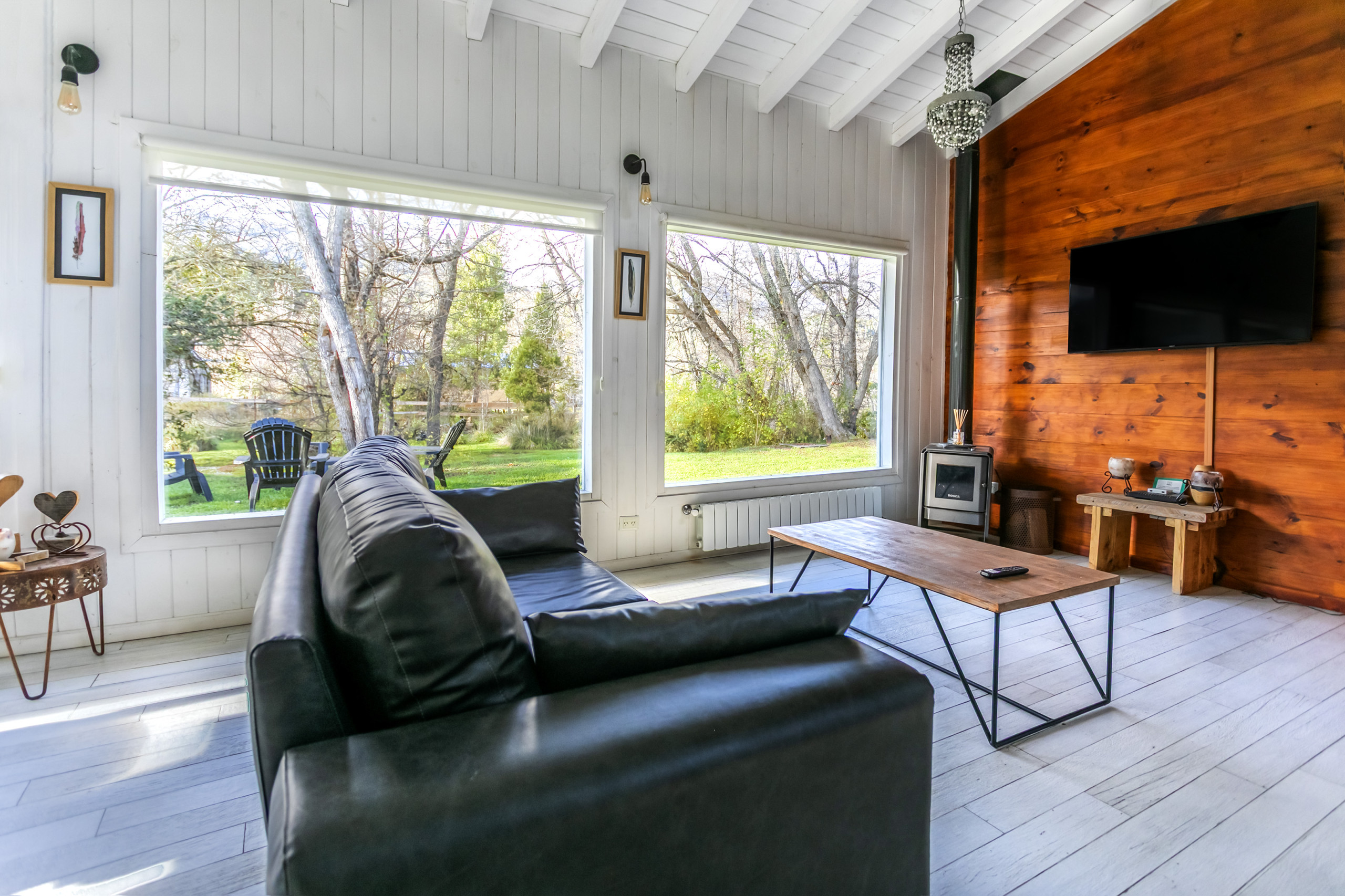 With a capacity for 4 people, this single-storey wooden house of 60 m² is designed to ensure the comfort of the guests. Upon entering, a bright living room with a sofa bed invites you to relax and enjoy the natural light that filters through its large windows. The American kitchen, equipped with a fridge, microwave, oven, washing machine and more, is connected to the dining room in an integrated environment.