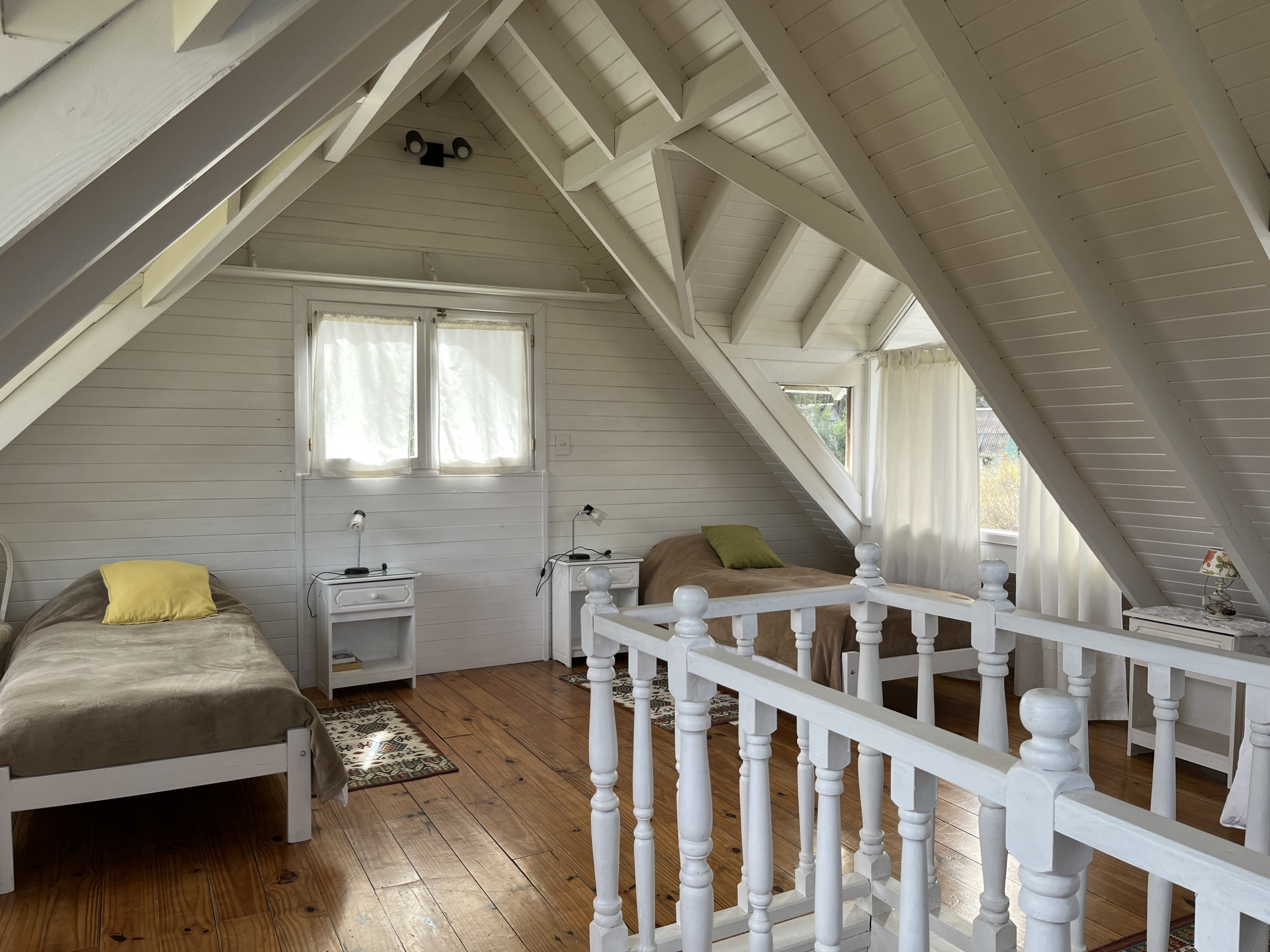 With a functional and warm design, the house has 2 bedrooms: one with a double bed and another with three single beds, offering comfortable rest for all guests. It has 2 full bathrooms, one of them en suite, which provides greater privacy and comfort. One of the bathrooms includes a bathtub, ideal for relaxing during the stay.