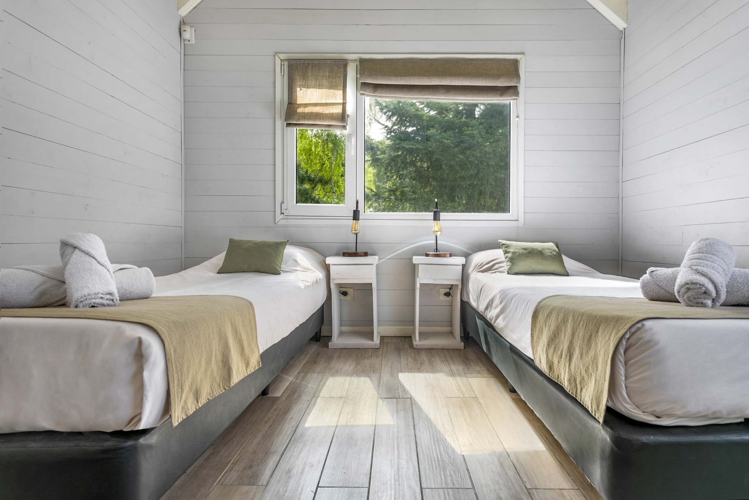 - Bedrooms: A master bedroom with a double bed and a view of the forest, and a second bedroom with two single beds (convertible to a double) and a wardrobe.