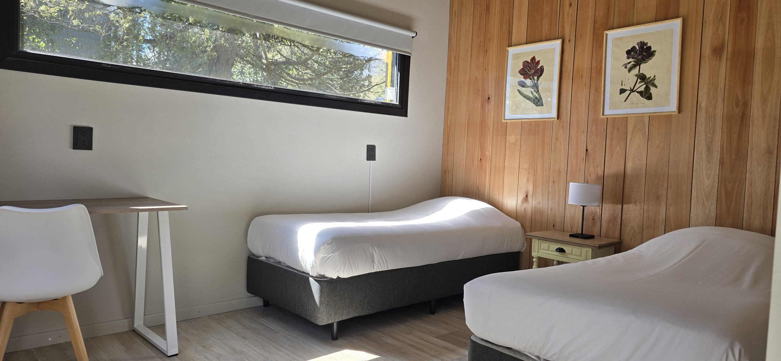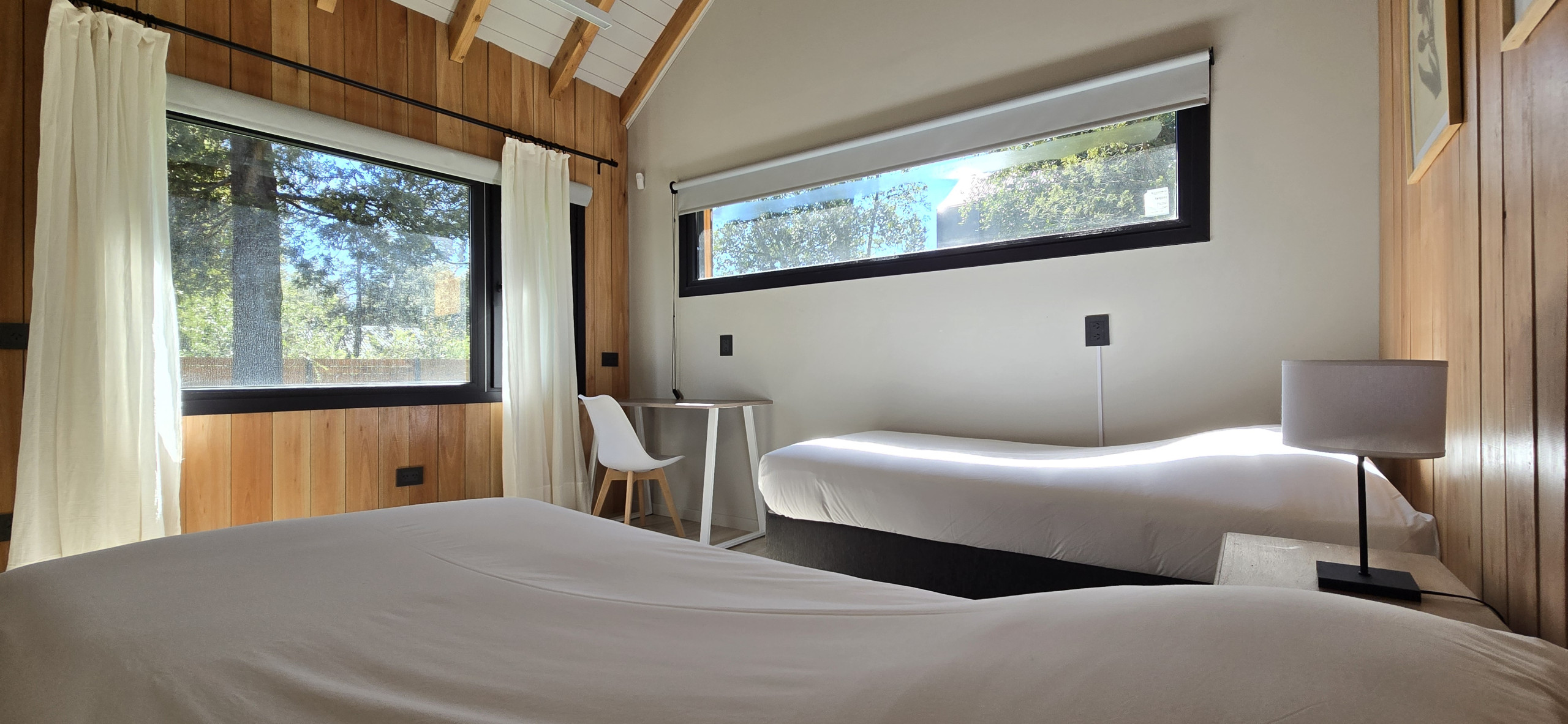 - The secondary one, with two single beds, wardrobe and views of the forest.