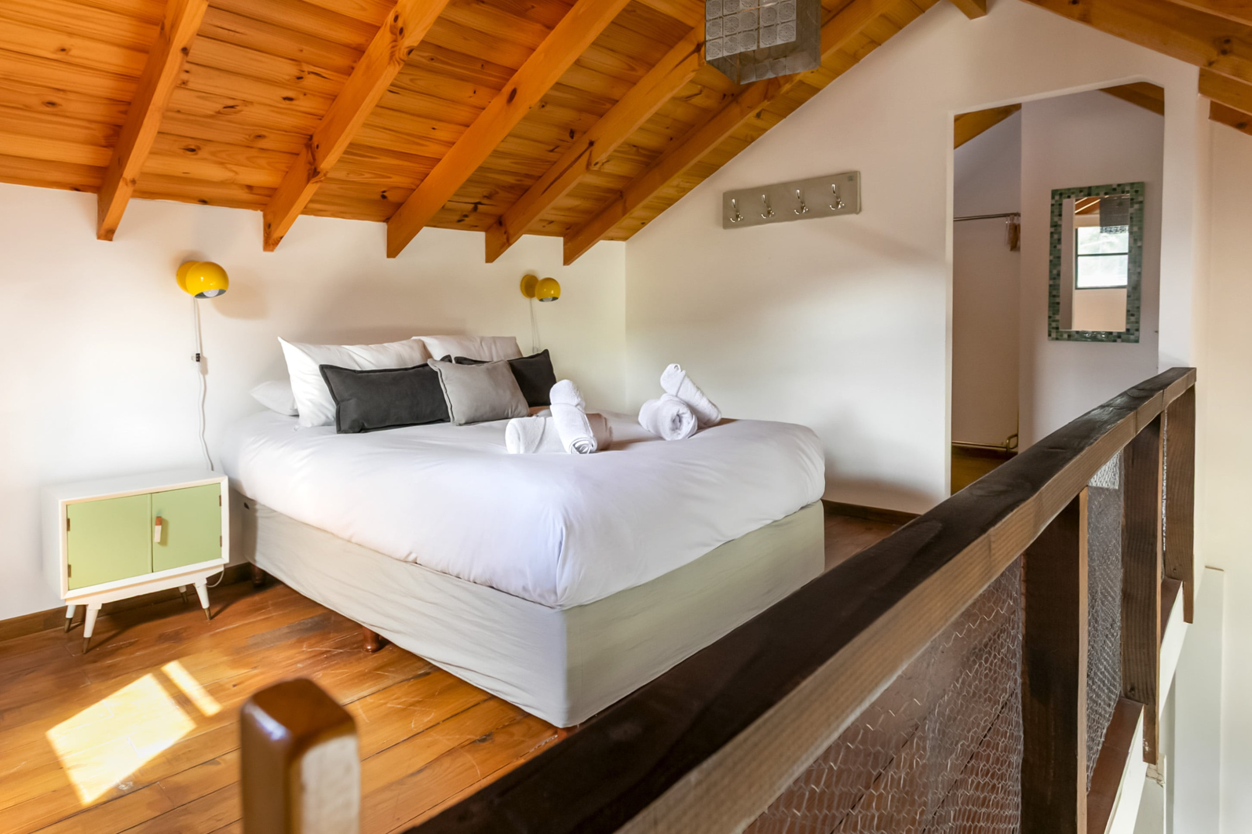 Com capacidade para quatro pessoas, este apartamento de dois andares tipo loft oferece um espaço confortável e funcional. No piso térreo, encontra-se uma sala de estar-jantar com cozinha totalmente equipada, uma casa de banho com chuveiro e duas camas individuais, ideal para crianças ou amigos. No piso superior, o quarto principal oferece uma cama de casal e um ambiente tranquilo para descansar.