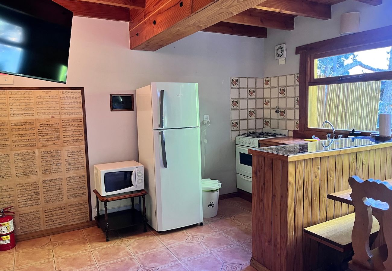 O nosso chalé em Villa La Angostura combina elementos em pedra e madeira que realçam o seu estilo patagónico, criando um ambiente quente e harmonioso. Dispõe de uma piscina aquecida compartilhada no complexo e um jacuzzi privado no chalé. A cozinha está completamente equipada com micro-ondas, frigorífico e utensílios, garantindo que nada falte durante a sua estadia. Para quem queira desfrutar da beleza do lago, este chalé com jacuzzi também oferece opções para chegar com a sua embarcação. Contacte-nos para coordenar e melhorar a sua experiência!