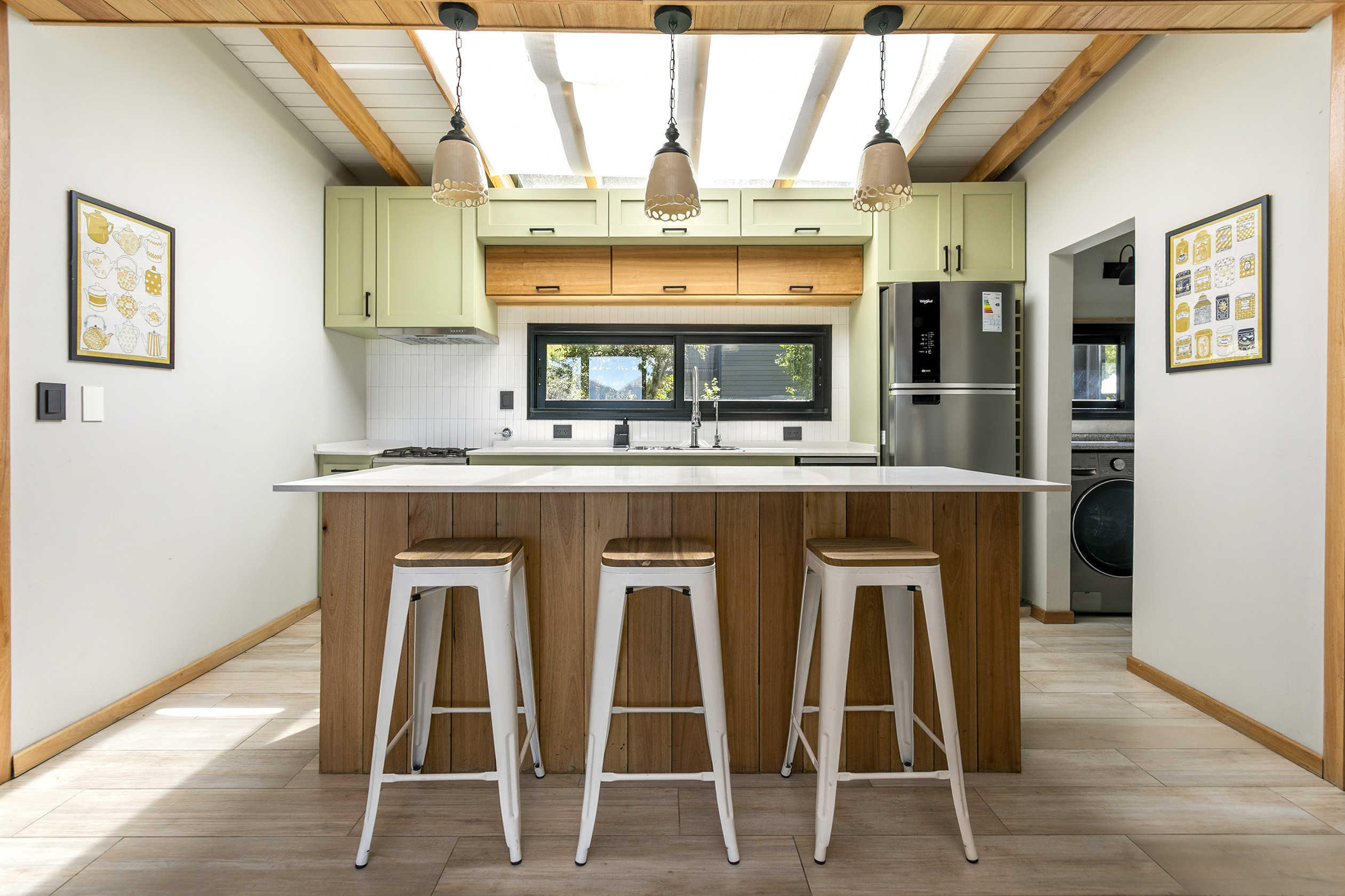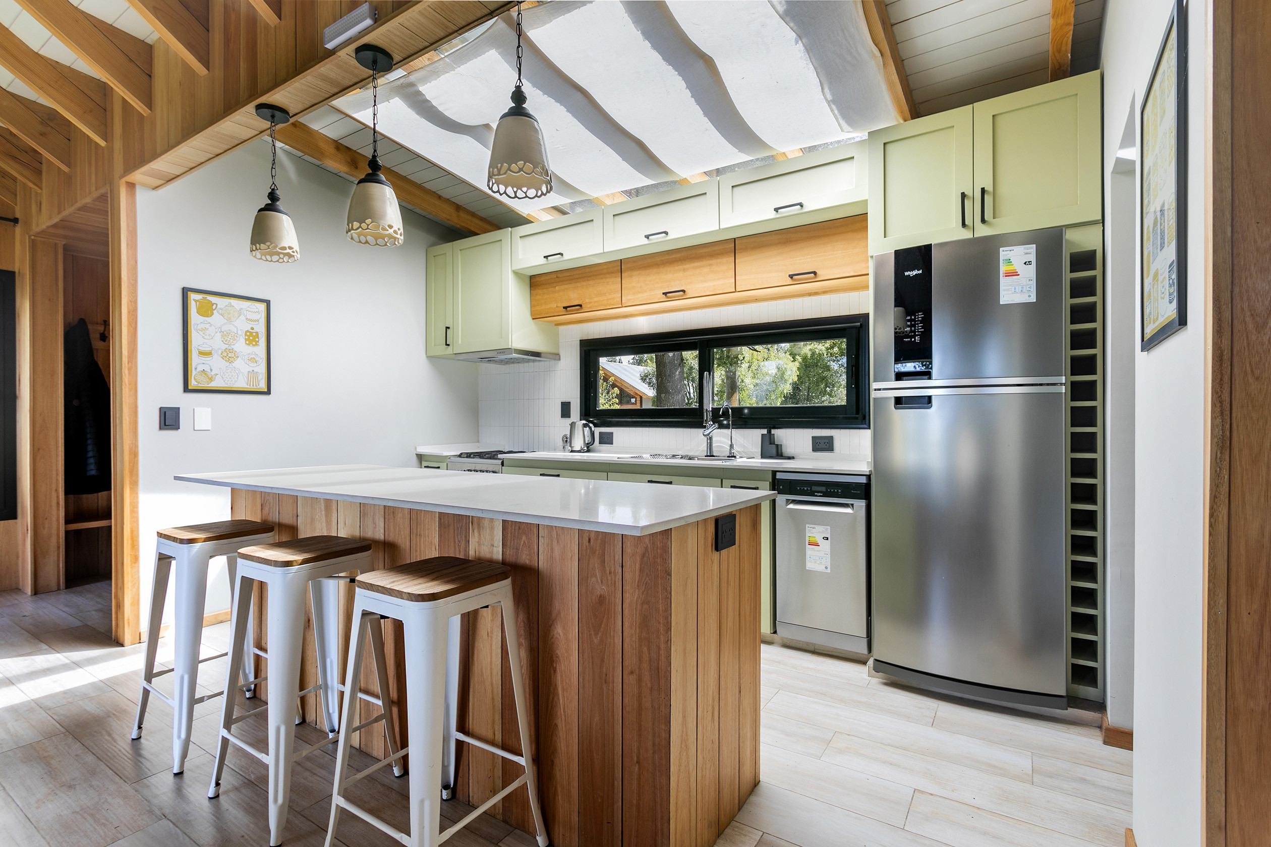 Esta casa de aluguel em Villa La Angostura está equipada com tudo o necessário para uma estadia confortável:
