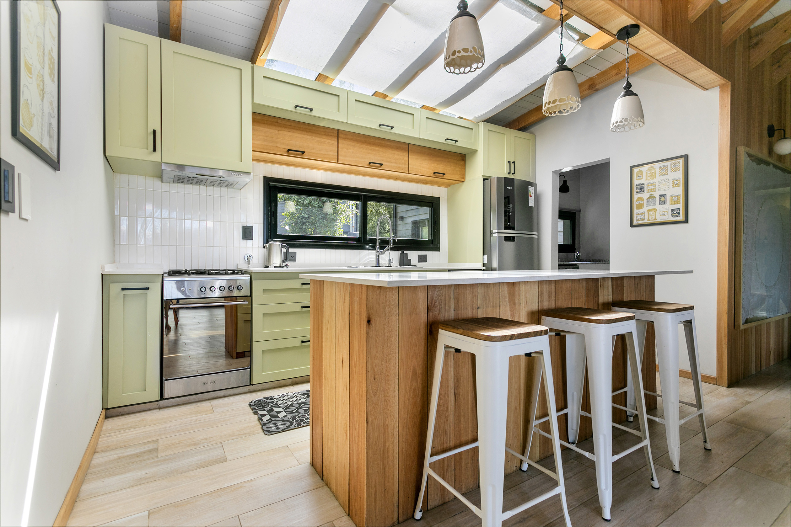 - Ambos os quartos compartilham um banheiro completo. Da sala de estar, você pode acessar o deck exterior com churrasqueira, ideal para desfrutar de churrascos em meio à natureza.