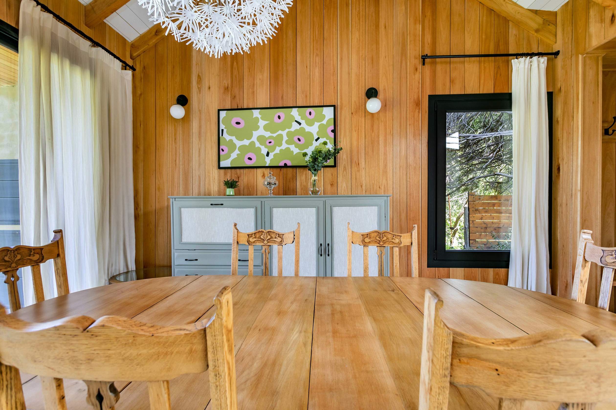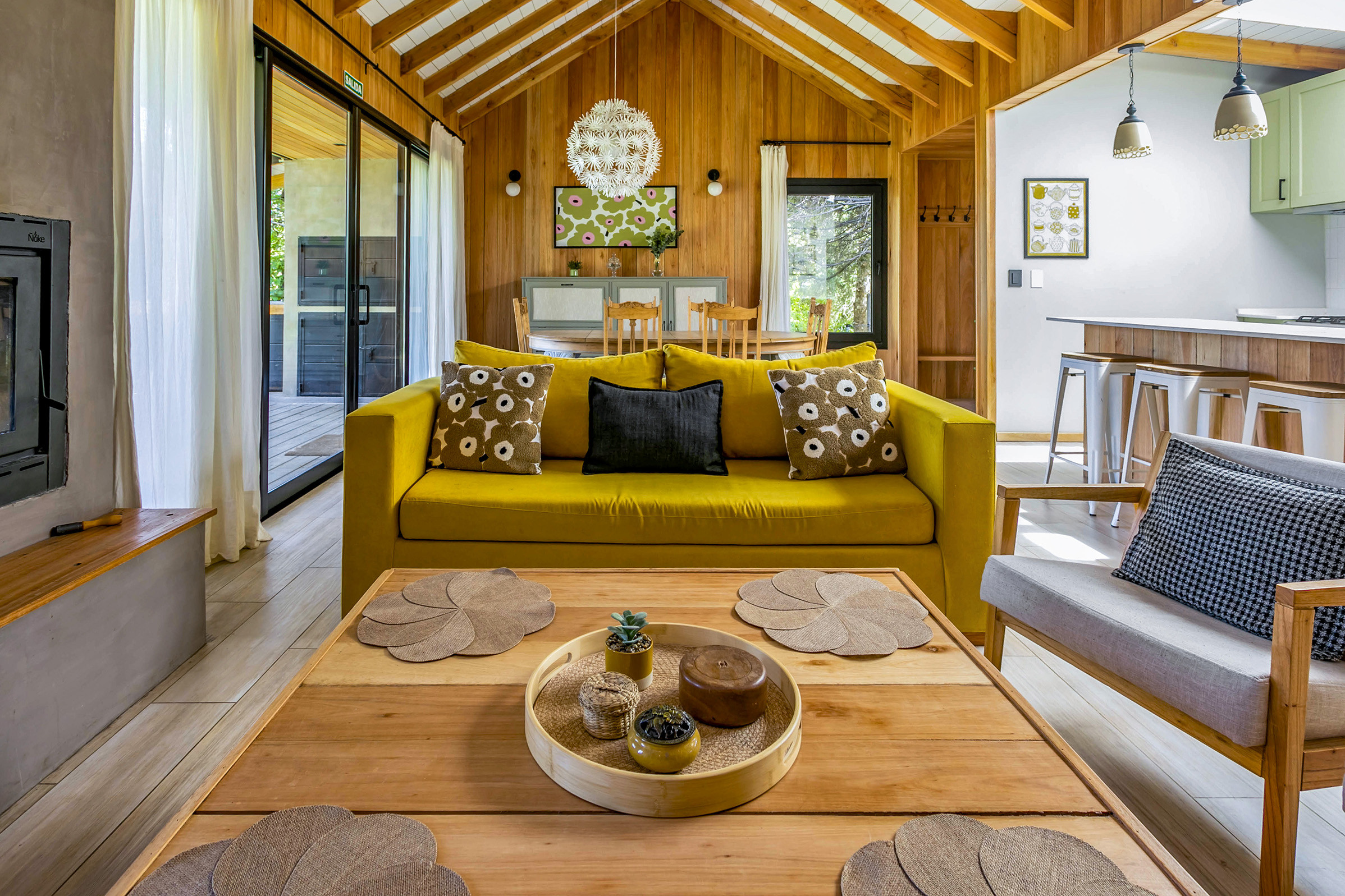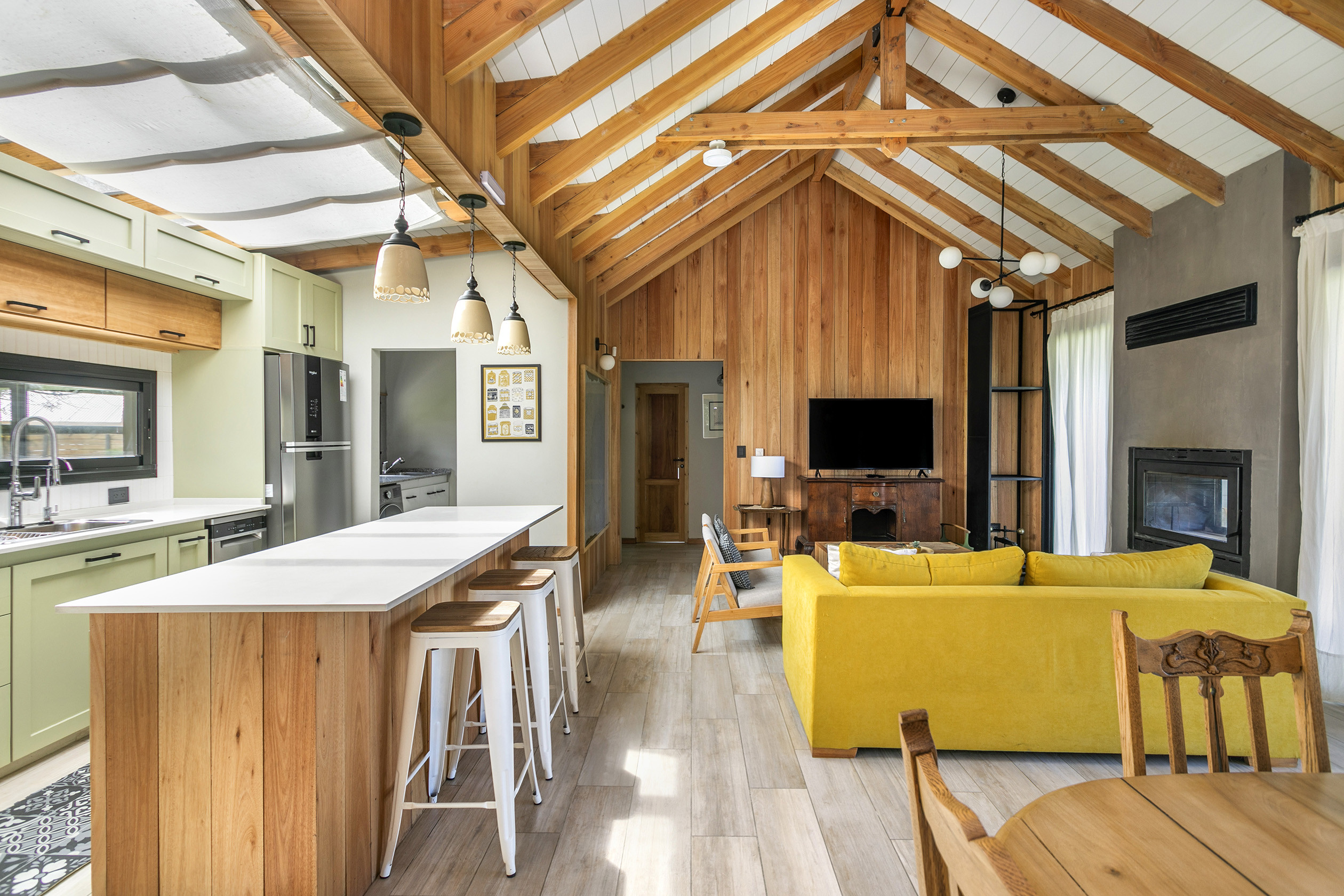 Com uma arquitetura moderna de inspiração escandinava, esta casa na natureza possui 90 m² distribuídos em um único andar, com capacidade para 4 pessoas. Ao entrar, você encontrará um ambiente integrado que combina sala de estar, sala de jantar e cozinha, proporcionando um espaço luminoso e acolhedor. A sala de estar inclui TV e confortáveis sofás, bem como uma mesa de trabalho para quem precisar trabalhar durante a estadia.