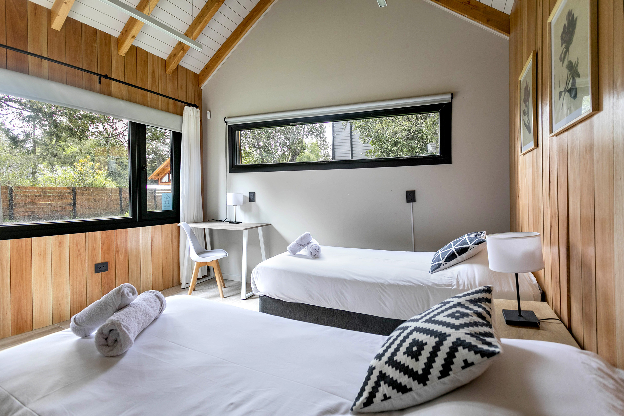 - O secundário, com duas camas individuais, armário e vista para a floresta.